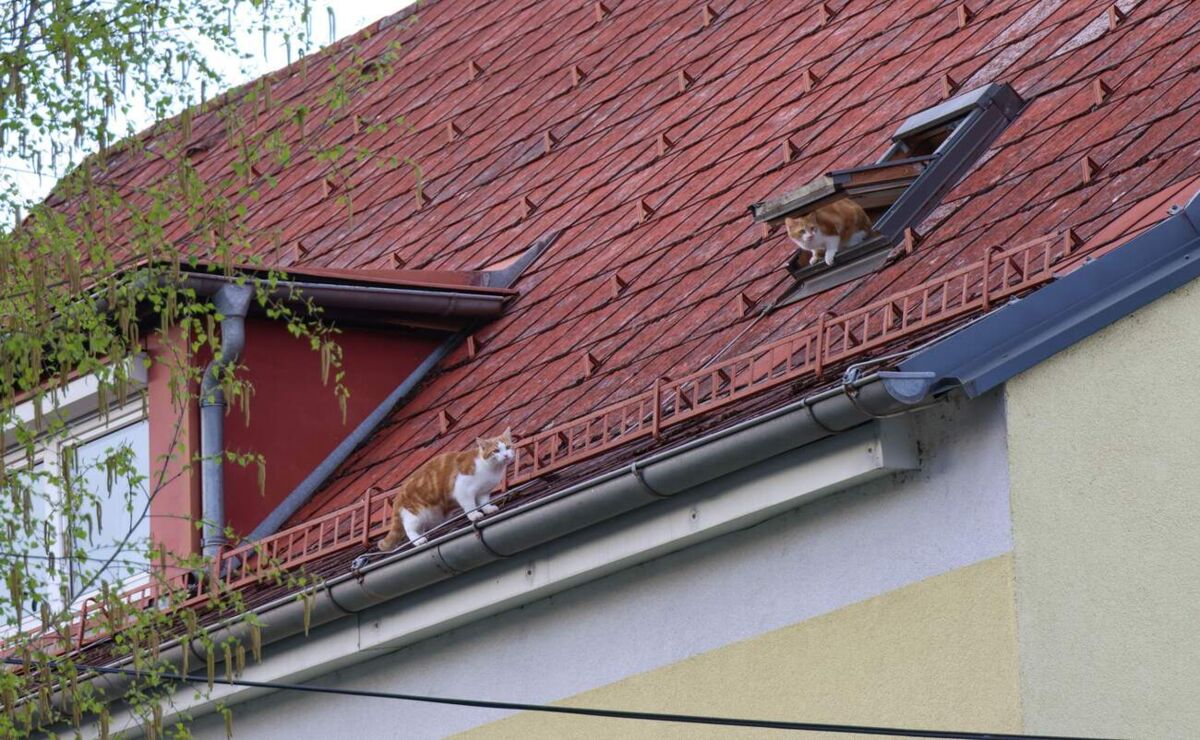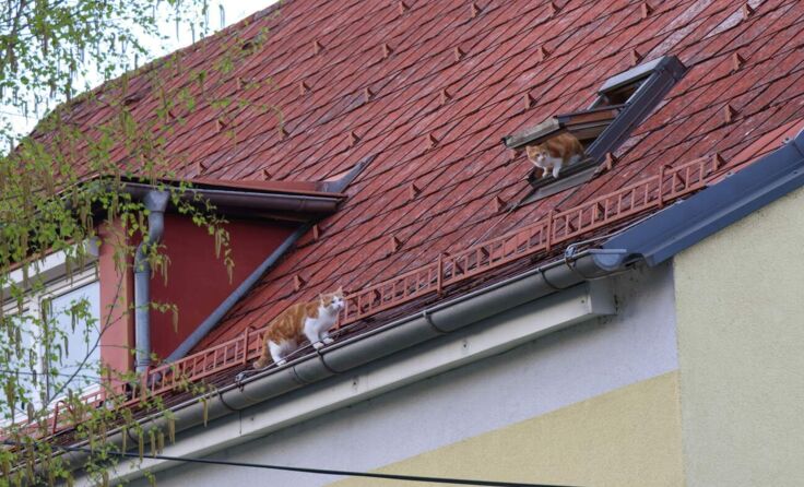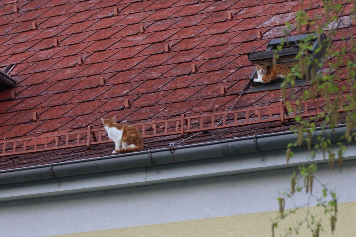 Zwei Katzen befanden sich am Dach eines Mehrparteienwohnhauses. Eine der Samtpfoten balancierte offenbar zuvor am Dachfirst des Gebäudes. Wie sich bei genauerer Lageerkundung dann herausstelle dürften die Tiere über ein offenes Dachfenster auf das Dach des Hauses gelangt sein.