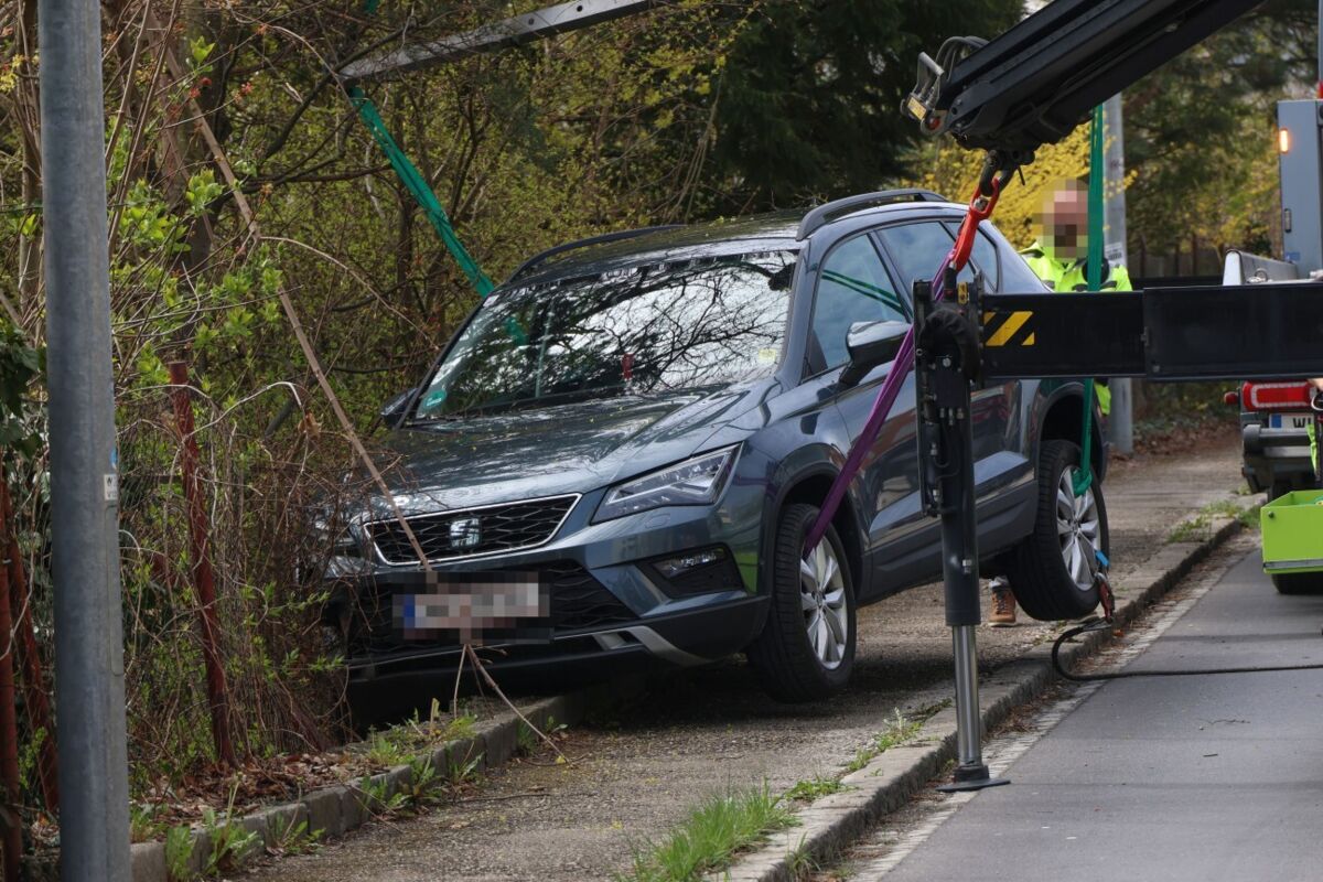 Anschließend wurde der Pkw mithilfe von zwei Abschleppfahrzeugen, die jeweils mit Kränen ausgestattet waren, schonend geborgen und abtransportiert. Parallel dazu sicherte die Feuerwehr den beschädigten Zaun sowie das betroffene Grundstück provisorisch ab, um weitere Gefahren zu vermeiden.