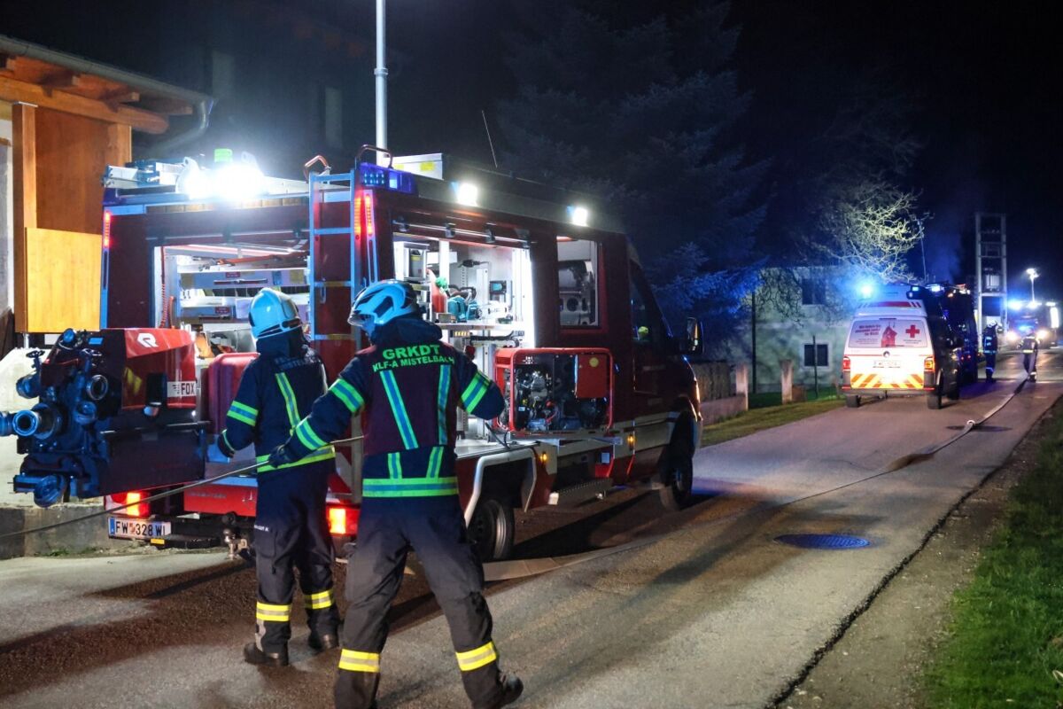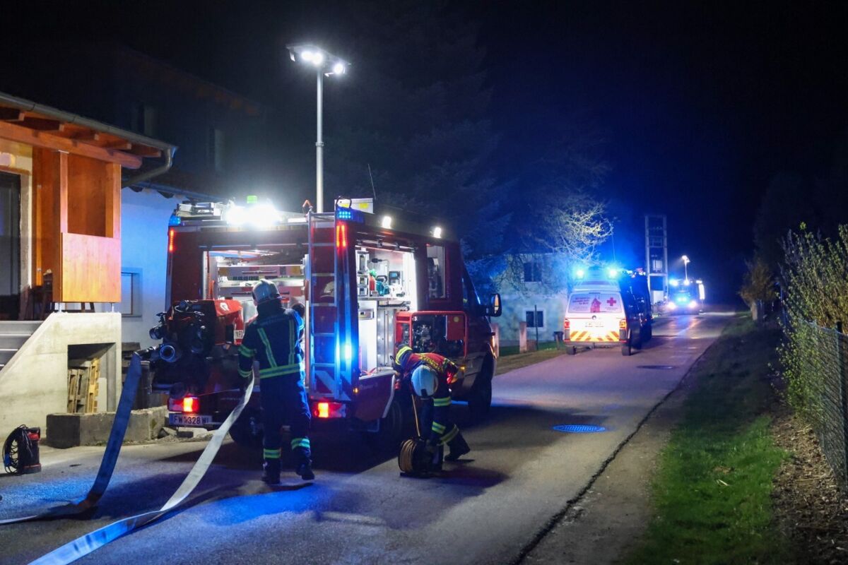 Feuerwehr löscht nächtlichen Heizraumbrand in Wohnhaus in Buchkirchen