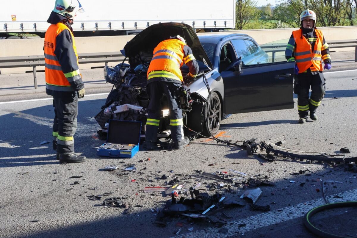 WELS. Auf der A25 Welser Autobahn ist am Donnerstagvormittag im Bereich Wels-Neustadt ein schwerer Unfall mit drei Pkw passiert. Zwei Insassen wurden in ihrem Fahrzeug eingeklemmt.