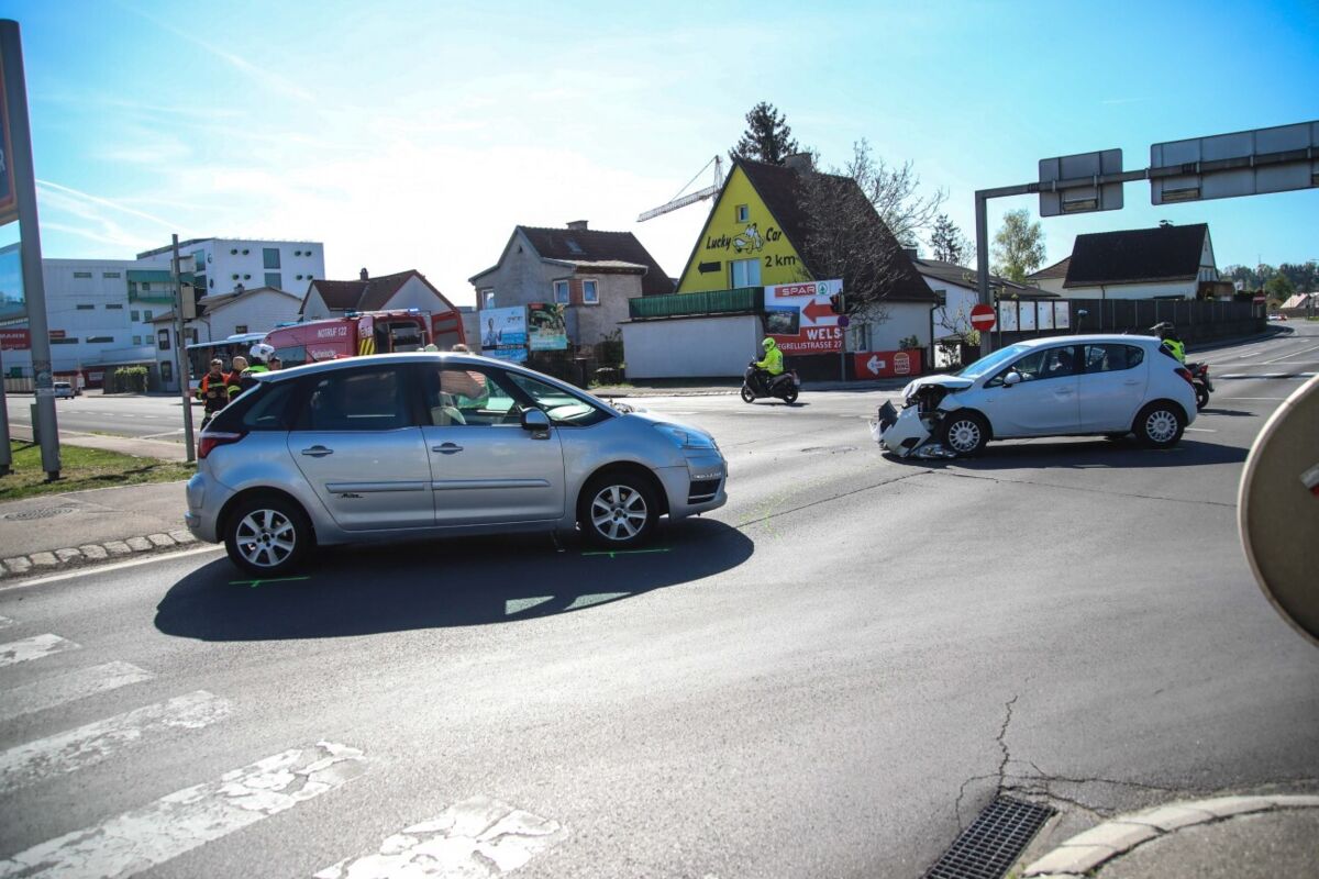 WELS. In Wels-Pernau sind am Sonntagvormittag zwei Autos in einem großen Kreuzungsbereich zusammengestoßen, dabei wurden zwei Menschen leicht verletzt.