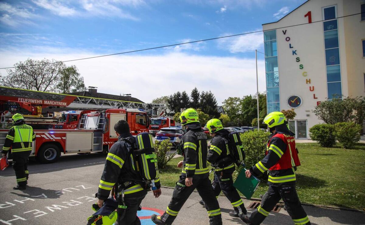 Feuerwehren rücken wegen Brandgeruchs in Volksschule in Marchtrenk aus