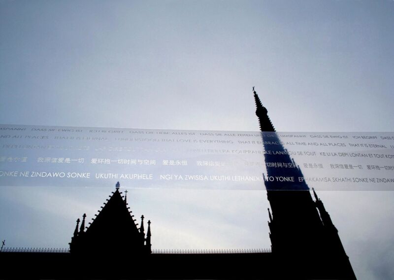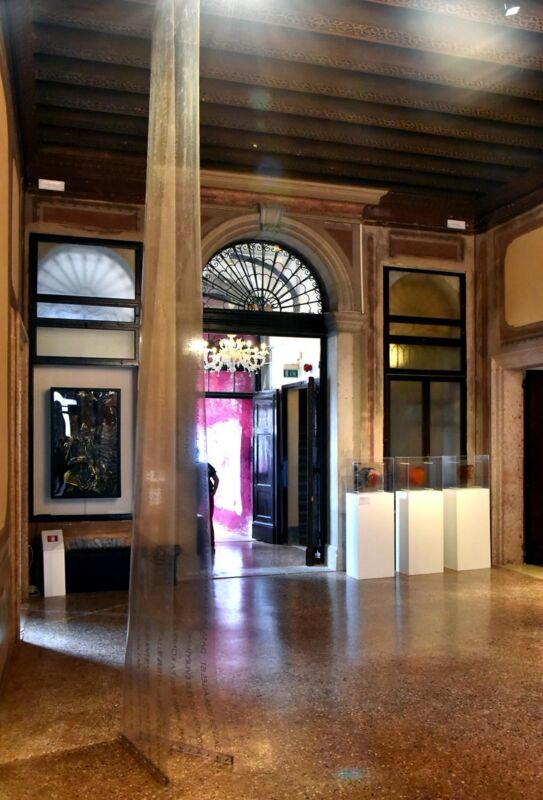 Die silber beschrifteten, transparenten Folienbänder zeigen sich in Sprachen der fünf Kontinente wiederholende Worte der Heiligen Theresia von Lisieux. 2009 erfolgte die Installation des Zeiten und Orte verbindenden Friedensprojekts im Linzer Mariendom, der es nun als Leihgabe an Venedig weitergab. Dort präsentiert Hannak ETAS im Kontext der Biennale und bringt so die Botschaft der Liebe von Österreich nach Italien. Symbolisch wird Italien aber auch mit China, Guyana, Südafrika, Malaysia, Ungarn, Venezuela, Österreich und Haiti verbunden sein, wo diese Banner seit 2008 bereits installiert wurden. Hannaks Friedensbanner ist noch bis Ende November bei der Biennale zu sehen.