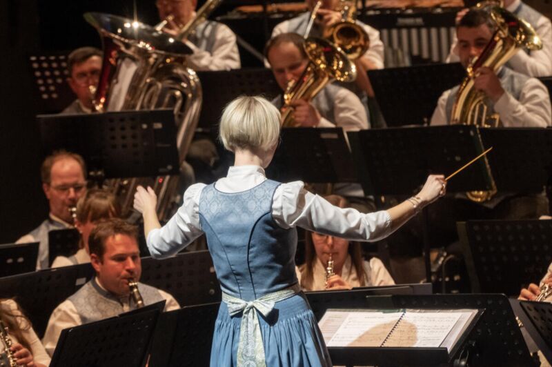 Beim Frühjahrskonzertsim Stadttheater Wels erlebte das Publikum der Trachtenkapelle Thalheim einen filmreifen Abend. Kapellmeisterin Manuela Straßmair und ihre Musiker entführten in die Welt der Filmmusik und gaben wahre Größen aus Film und Fernsehen zum Besten. Eröffnet wurde das Konzert mit der berühmten 20th Century Fox Fanfare. Anschließend begeisterten bekannte Titelmelodien aus Hollywood-Blockbustern wie Stars Wars oder Jurassic Park die Besucher. Solistin Sabine Deixler berührte mit „Schindlers Liste“ auf der Klarinette und die Kapellmeisterin höchstpersönlich versetzte die Zuhörer mit ihrer Stimme in die abenteuerliche Welt von Agent 007.