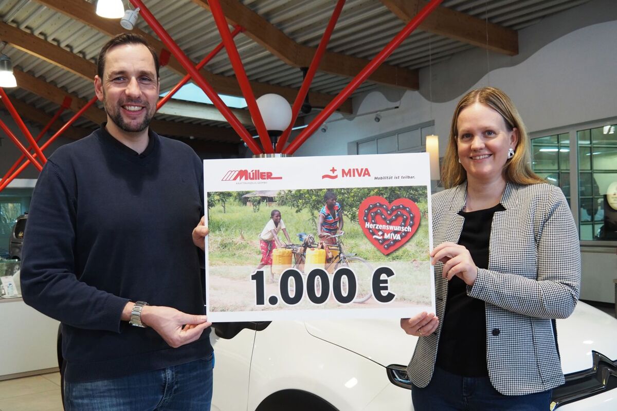 STADL-PAURA/BAD WIMSBACH-NEYDHARTING. 1.000 Euro und damit zehn Fahrräder für Menschen in den ärmsten Ländern der Welt finanziert Markus Müller vom Autohaus Müller mit seiner Spende an die Miva, die Missions-Verkehrs-Arbeitsgemeinschaft in Stadl-Paura.