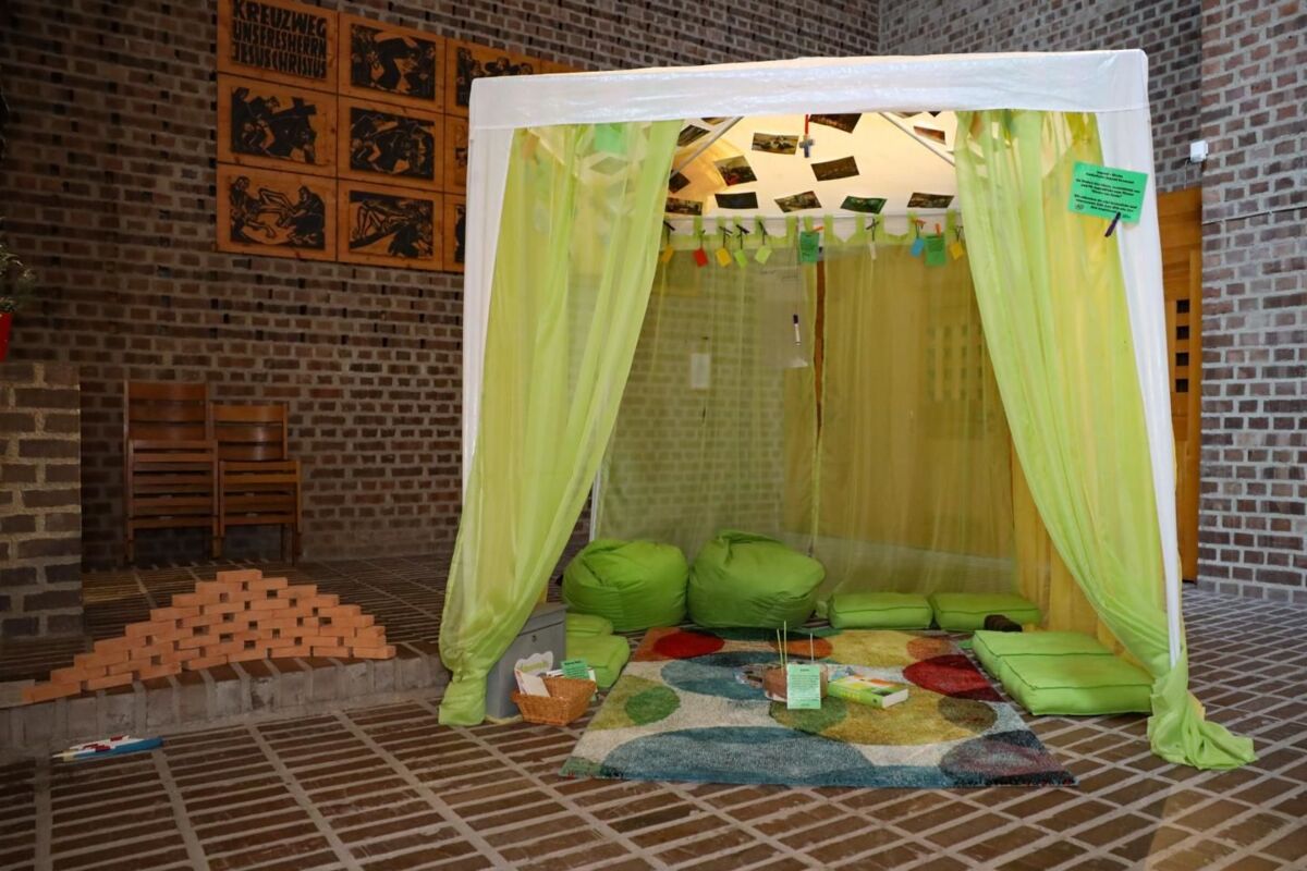 Das Zelt, das an die biblische, alttestamentliche Zeit erinnert, wird kombiniert mit einer kreativen und ästhetischen Umgebung, die ganz in unsere heutige Zeit passt. In diesem Zelt sind alle Interessierten und Neugierigen „eingeladen zu entspannen, zu entdecken, zu beten, einfach da und sie selbst zu sein“, so Margot Brucker, Pastorale Mitarbeiterin der Pfarre.