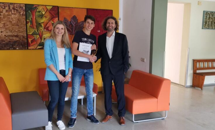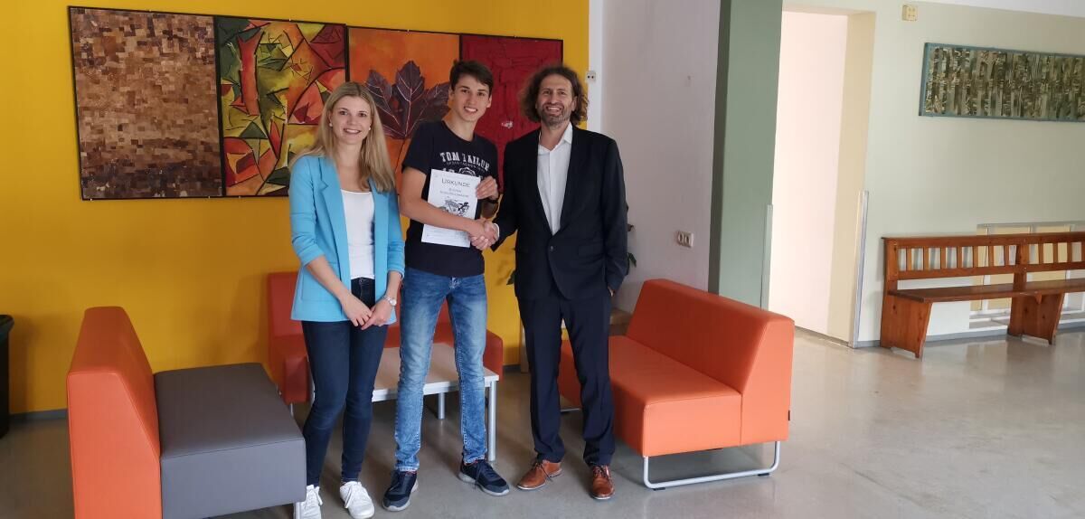 Da er mit seinem Modell auch in Oberösterreich den ersten Platz belegte, erhielt Kurz-Reichmann von der Bildungsdirektion eine Urkunde, die ihm von Direktor Rainer Jocher überreicht wurde.