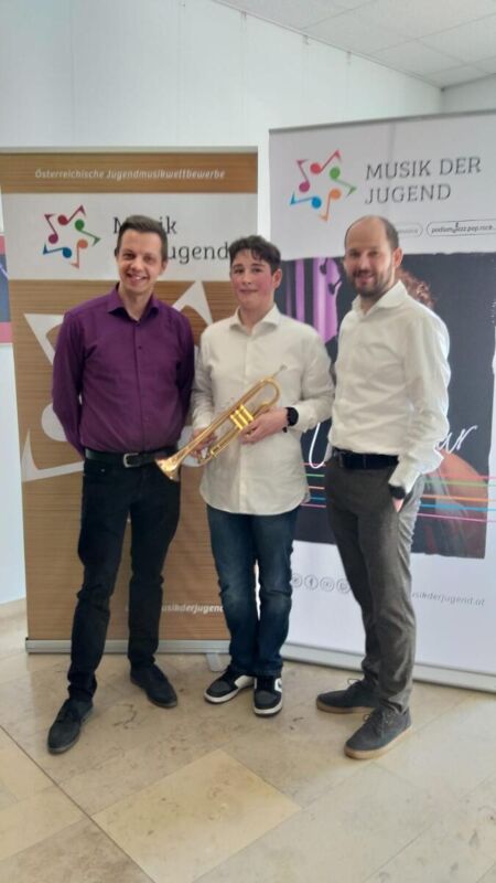 Martin Zehetner (Trompete), Schüler der Landesmusikschule Marchtrenk hat einen zweiten Preis gemacht. Maya Pfeiffer (Saxophon) wurde mit Silber bewertet.