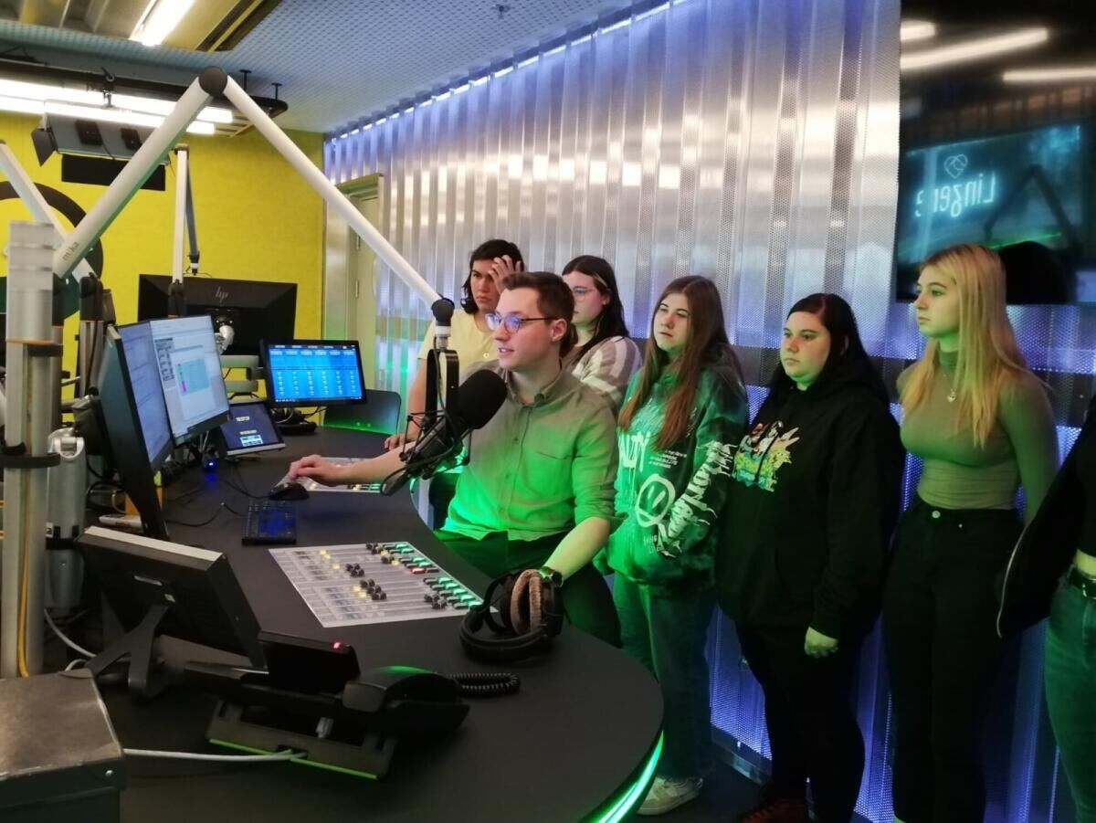 Bei einem Pod-Cast-Workshop im Life-Radio Studio, bei einer Besichtigung der Studio und der Sende- und Schnitttechnik erhielten die Schülerinnen einen Einblick in die Arbeit bei einem Radiosender.