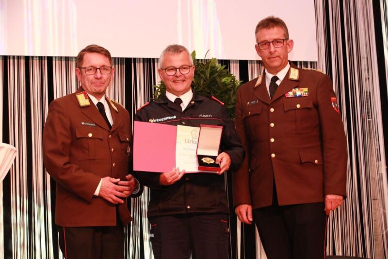 Es war ein würdiger Rahmen um die lange Geschichte der Feuerwehr näher zu beleuchten. Doch es war nicht ein langer historischer Vortrag mit vielen Zahlen und Fakten, sondern ein kurzweiliger Abend. Auch nach 160 Jahren ist die Welser Wehr immer noch freiwillig, schnell und höchst professionell. Das liegt an der Kameradschaft im Team aber auch an der Führung. Deswegen war es auch der richtige Rahmen an den langjährigen Kommandanten Franz Humer Danke zu sagen. Er übergab vor wenigen Wochen das Amt an Roland Weber. Beim Heimgehen nach dem Fest hatte Humer viel zusätzliches Gepäck mit. Er bekam die Verdienstmedaille der Stadt Wels, das Ehrenzeichen des Stadtfeuerwehrverbandes Amberg (Bayern) und als Abschluss das Große Floriani-Verdienstkreuz des Landesfeuerwehrverbandes.