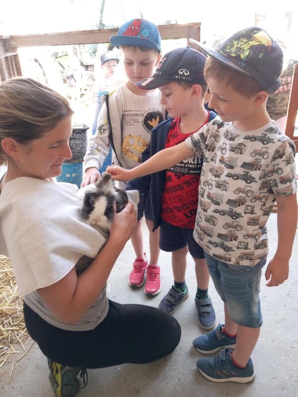 „Wir durften dort Schafe und Hasen streicheln und füttern und in der ´Kartoffelwaschmaschine` hofeigene Kartoffeln waschen. Von der Bäuerin wurden die Erdäpfel dann zu Wedges verarbeitet die wir uns gerne schmecken ließen“, freut sich Kindergartenpädagogin Andrea Csenar. Außerdem wurde die Kartoffelerntemaschine besichtigt und alle Kinder hatten zu ihrer großen Freude die Gelegenheit, sich auf den Traktor zu setzen.