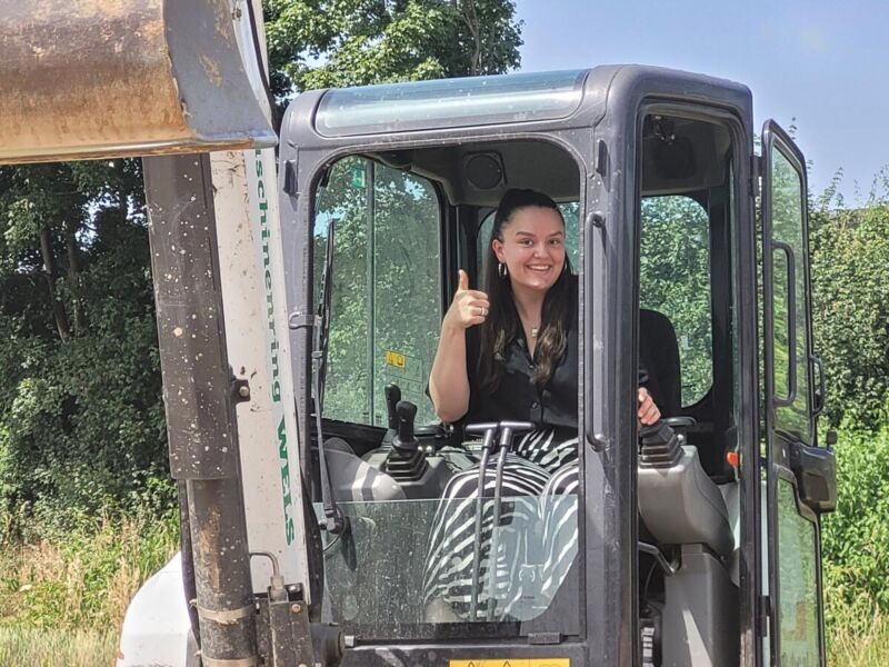 Ein Outdoor-Techniktraining haben einige Mädchen schon absolviert. Sie konnten sich beim Traktorfahren von einem modernen Lenksystem überzeugen, mit dem Schaufellader Sandberge versetzen, den Grillo, einen selbstfahrenden Profi-Rasenmäher, testen oder sogar den großen Bagger bedienen.