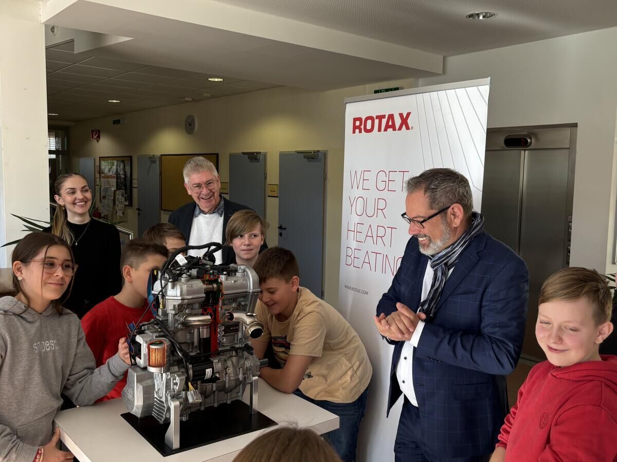 Junge Menschen für Technik zu begeistern, beginnt mit Erleben und Verstehen“, erklärt Mario Gebetshuber, General Manager bei BRP-Rotax, der den Motor im Rahmen eines Schulbesuchs in der NMS offiziell überreichte. „Durch praxisnahe Einblicke in die Welt der Motoren möchten wir junge Talente inspirieren und ihr Interesse für Technik wecken. Kfz-Lehrlinge haben den Rotax 900 ACE Motor – normalerweise im Einsatz in Ski-Doo Schneemobilen – fachgerecht zerlegt, aufbereitet und für den Einsatz im Klassenzimmer vorbereitet. Der Schaumotor vermittelt die Funktionsweise eines modernen Verbrennungsmotors. Vom Steuertrieb mit Steuerkette über die Ölversorgung bis hin zum Ventil- und Kurbeltrieb: Das sichtbare Innenleben eröffnet tiefe Einblicke in die Welt der Motorentechnik.