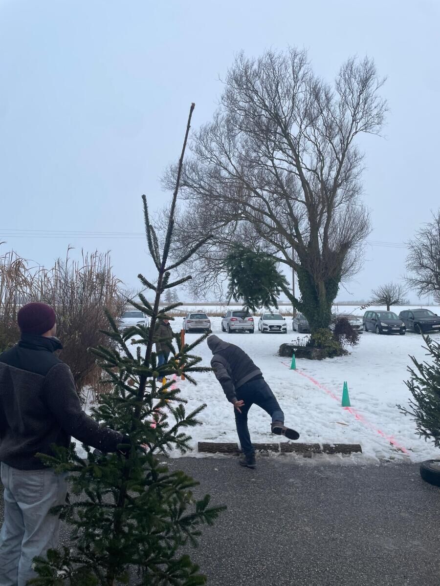 „Und da braucht man schon eine eigene Technik“, gibt Leblhuber zu bedenken, dass das Christbaumwerfen gar nicht so einfach ist. Zumal es durchaus Bäume gab, die 2,5 Meter hoch waren. Wurfgeschoße wurden zur Verfügung gestellt, konnten aber auch von daheim mitgebracht werden.