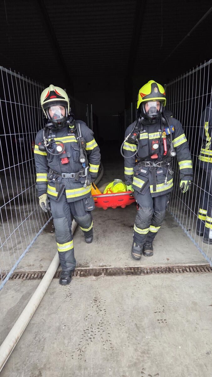 Nach einer Einweisung übten die Teilnehmer schrittweise die einzelnen Abläufe, zunächst ohne Atemschutzmaske, jedoch mit Twin-Pack-Atemschutzgeräten am Rücken. Besonderes Augenmerk lag auf einer sauberen und strukturierten Schlauchverlegung, einer kontrollierten Wasserabgabe sowie dem koordinierten Vorgehen im Trupp.