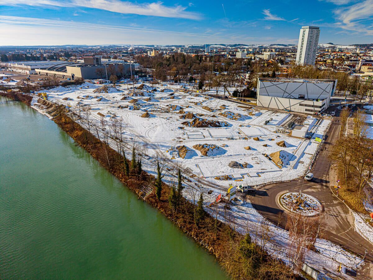 Und genau die Traun-Bucht wird gerade errichtet. Diese ist 75 Meter lang und 15 Meter breit. Zusammengerechnet ergeben die 127 einzelnen Betonfertigteile ein Gesamtvolumen von rund 98,5 Kubikmeter Beton mit einem Gesamtgewicht von rund 259 Tonnen. Damit sind das Sonnenbaden, Erholen oder auch der Gang in die Traun erleichtert. Geplant sind auch Veranstaltungen. Erreichbar ist die Bucht über die gerade entstehende Volksgartenallee. In deren Sichtachse führt eine vierteilige Stiegenanlage mit Handläufen und integrierter Beleuchtung hinunter zu einer Betonplattform. Bäume werden als Schattenspender gepflanzt.