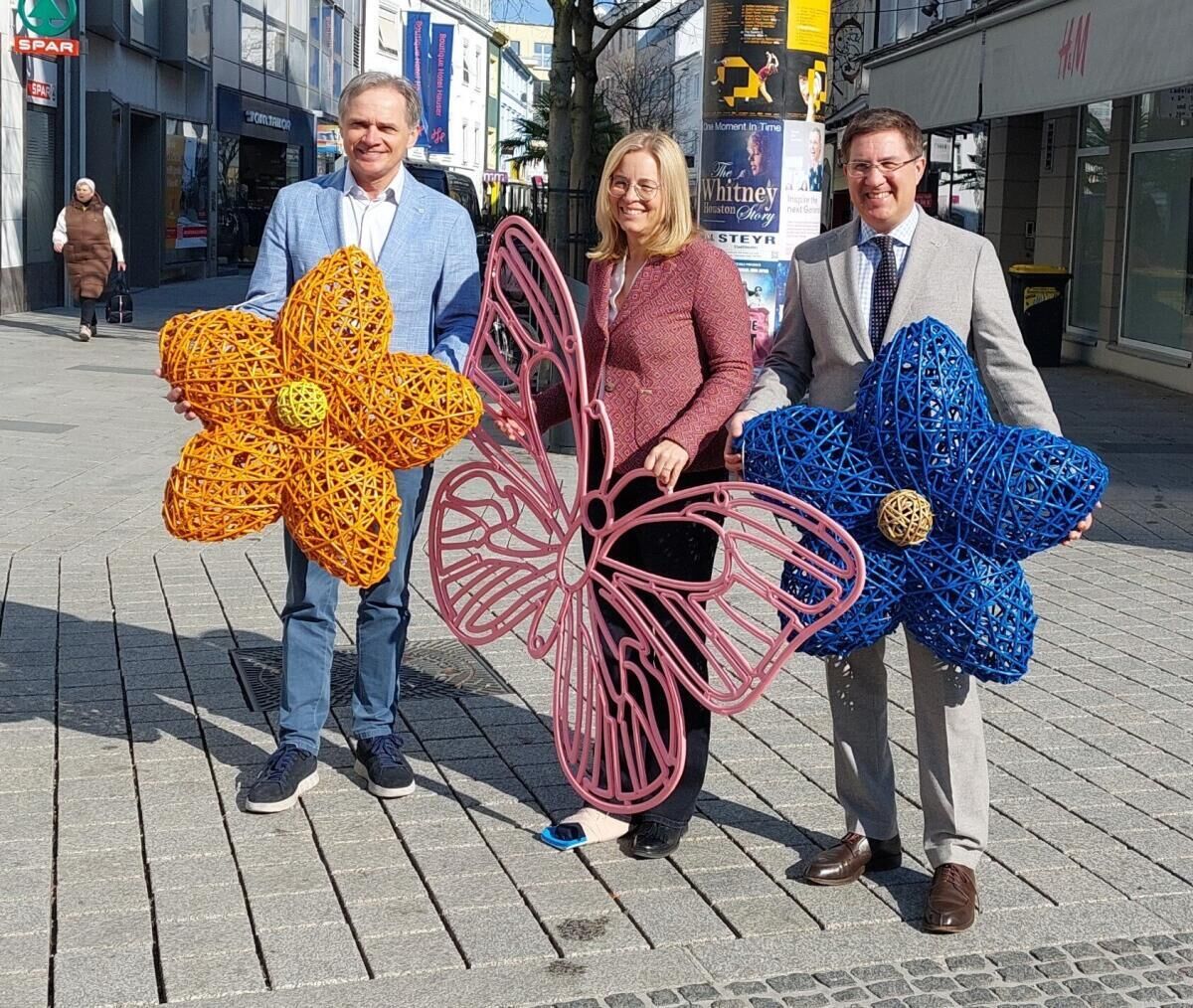 Seit 2020 werden die unterschiedlichsten Motive präsentiert. In diesem Jahr geht es in Richtung Schmetterlinge und Blüten. Das darf man ruhig auch als ein Fingerzeig in Richtung Landesgartenschau 2027 sehen. „Die liebevoll gestaltete Dekoration mit Blumen und Schmetterlingen schafft eine frühlingshafte, einladende Atmosphäre, die Lust aufs Flanieren, Verweilen und Genießen macht“, streut FP-Vizebürgermeisterin Christa Raggl-Mühlberger der neuen Dekoration Rosen. 120 Motive insgesamt sind es, die dann über der Fußgängerzone hängen. Dazu kommen Blumengirlanden und liebevoll arrangierte Blumenbouquets in der Pfarrgasse.