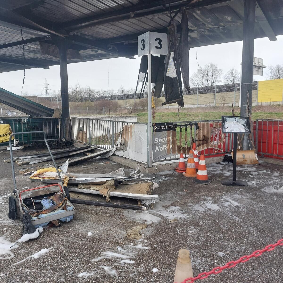 Die Beleuchtung und die Überdachung hat großen Schaden genommen. Einzige Einschränkung für die ASZ-Nutzer. Derzeit kann kein Grünschnitt angenommen werden. Dies müsste ab Freitag, 3. April, mittags wieder möglich sein.