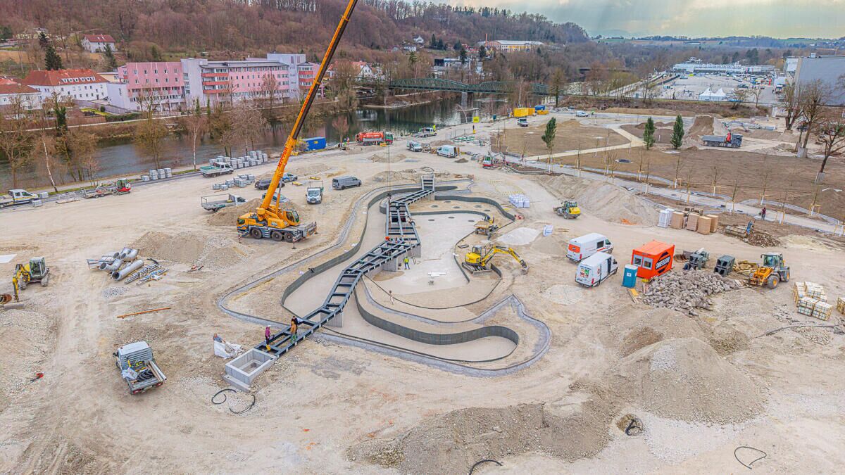 In den kommenden Wochen folgt die Errichtung des Wasserspielplatzes, Sport- und Spielgeräte aller Art, sowie unterirdische Arbeiten für Kanal, Wasser und Strom. Die Montage der Beleuchtung steht an, sowie die Beeteinfassungen plus Wegebau. Es braucht noch Modellierungsarbeiten des Geländes, Aufbringung von Humus, Setzen von Bäumen und Stauden plus die Errichtung von Geländern (unter anderem bei der Welser Bucht) und des Zauns.