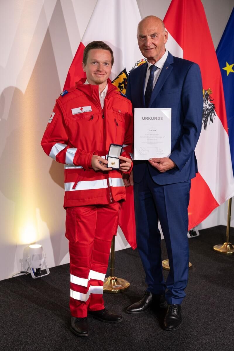 Felix Gößl aus Wels wurde für sein Engagement im sozialen Bereich geehrt. Er engagiert sich beim Österreichischen Jugendrotkreuz und trägt dazu bei, junge Menschen für Solidarität und gesellschaftliche Verantwortung zu sensibilisieren.