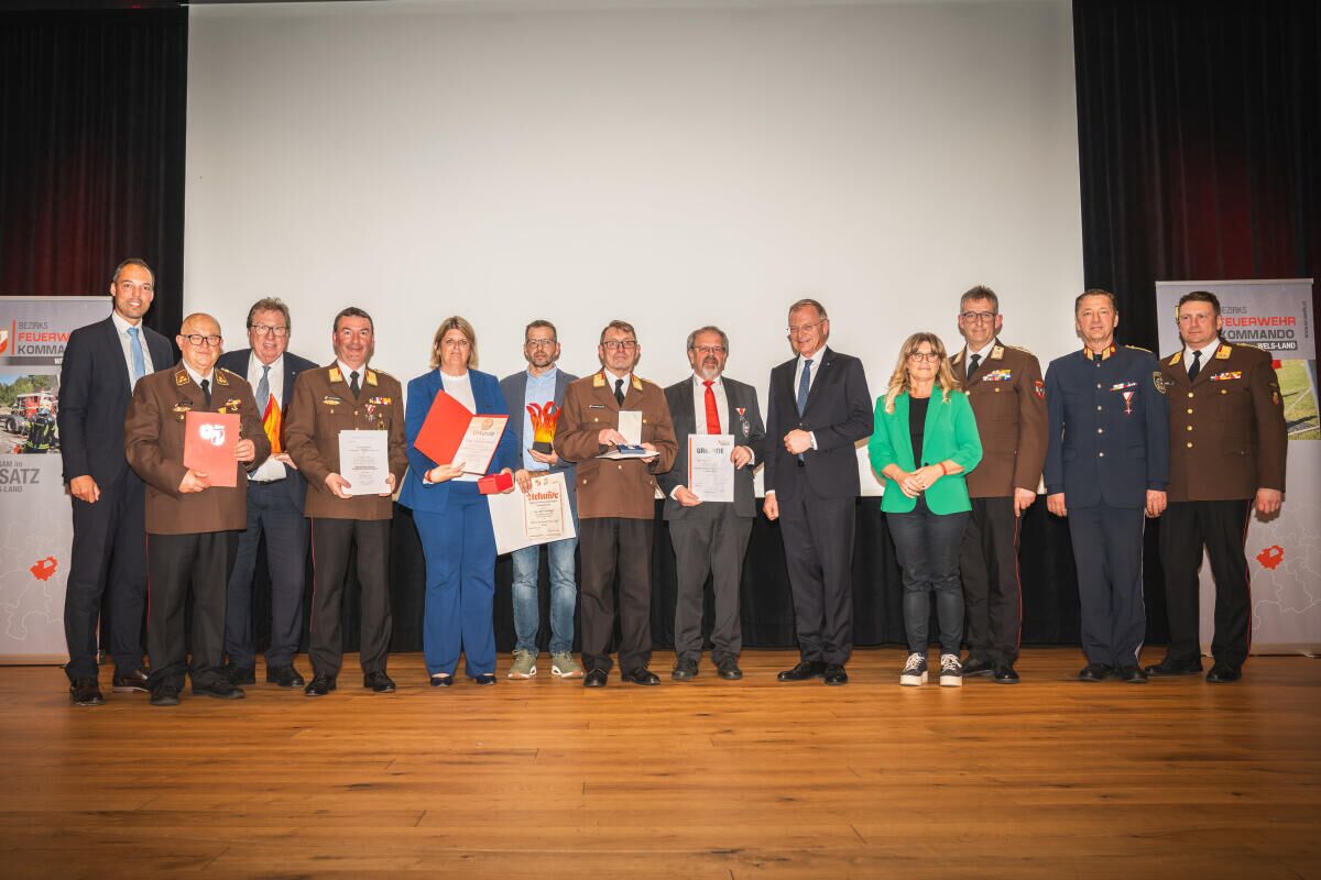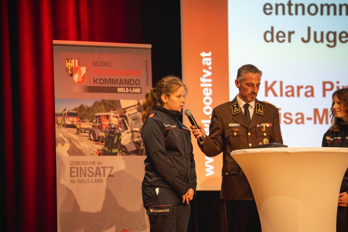 Die Flamme des Bezirkes Wels-Land ging an Stefan Weidlinger von der Asfinag, die Große Flamme an den langjährigen Bürgermeister-Sprecher Andreas Stockinger. Die Verdienstmedaille des Bezirkes in Silber erhielt Rotkreuz-Ortsstellenleiter Ernst Penninger, das Verdienstabzeichen des ÖBFV Stufe III ging an Ehren-Abschnittsbrandinspektor Leopold Taubner und die Große Florian-Ehrenmedaille in Bronze an Bezirkshauptfrau Elisabeth Schwetz.