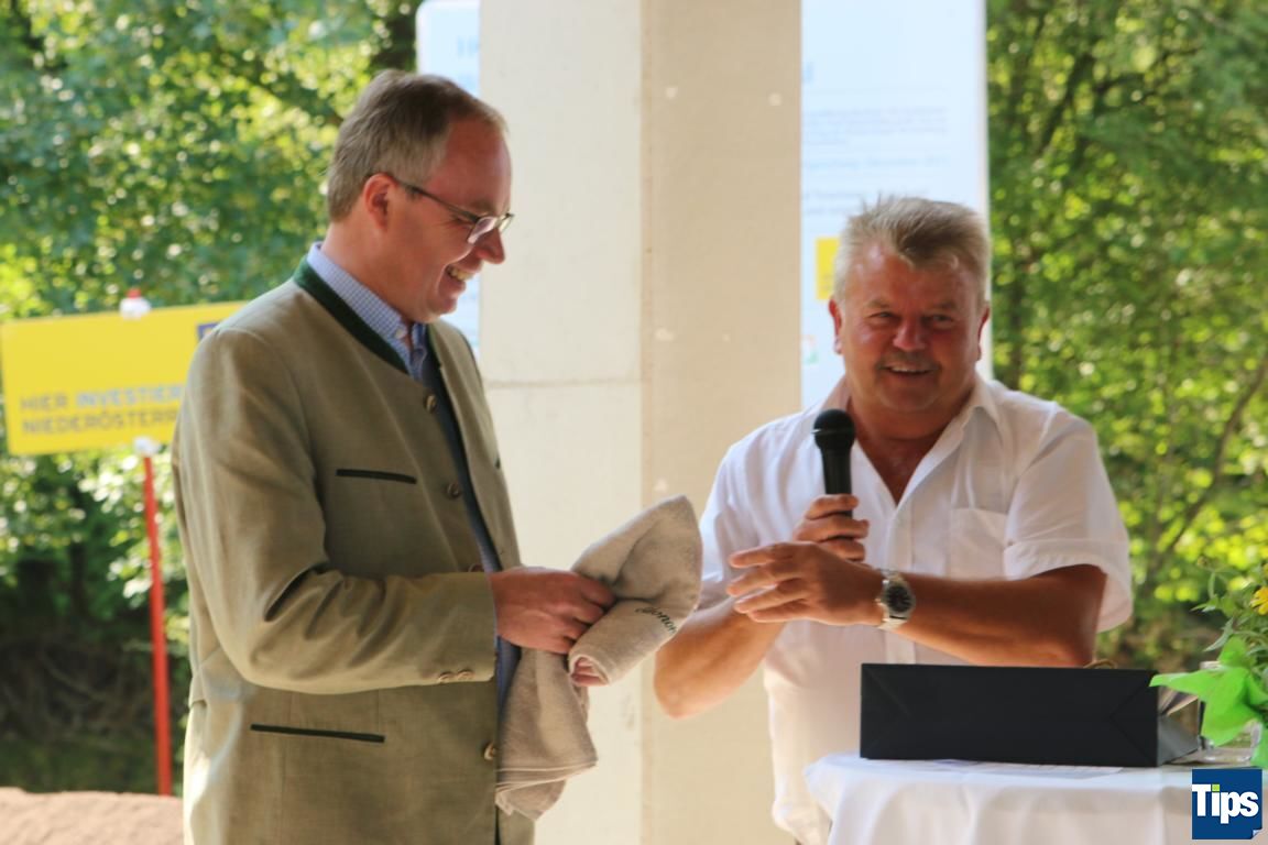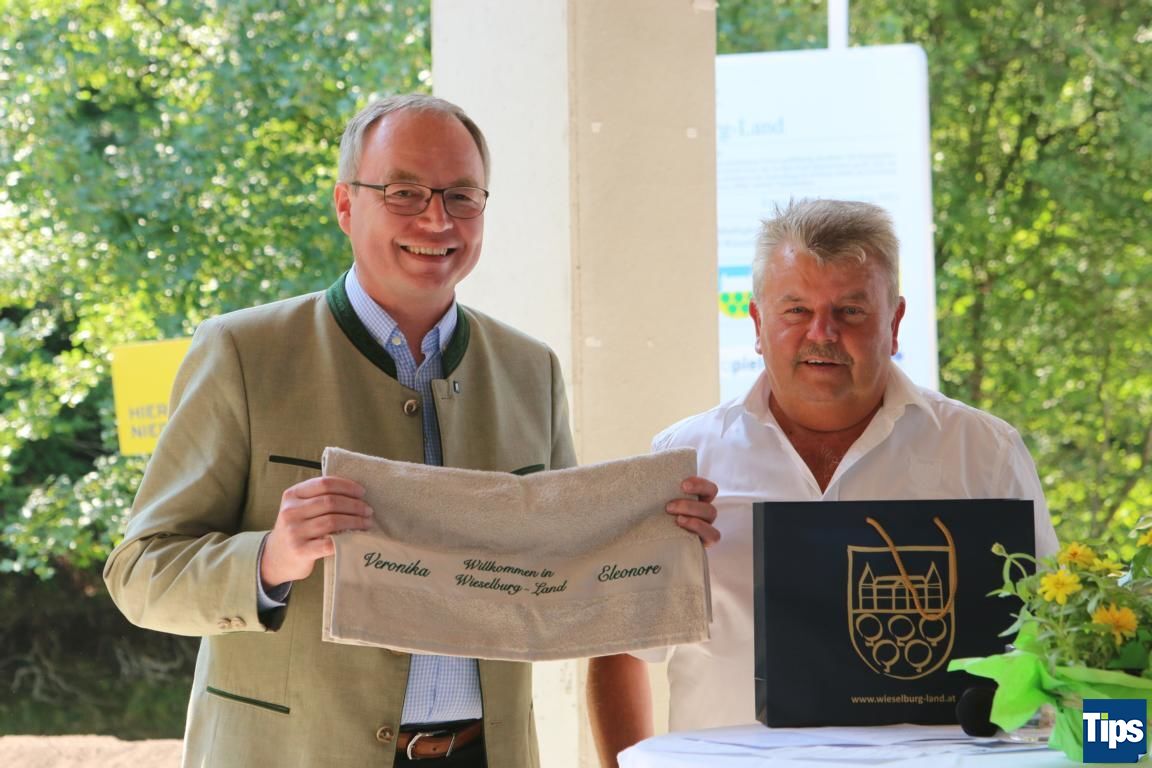 Abschließend überreichte Karl Gerstl, seitens der Gemeinde Wieselburg-Land, Stephan Pernkopf ein Präsent zur Geburt seiner Tochter, die vor kurzem das Licht der Welt erblickte.