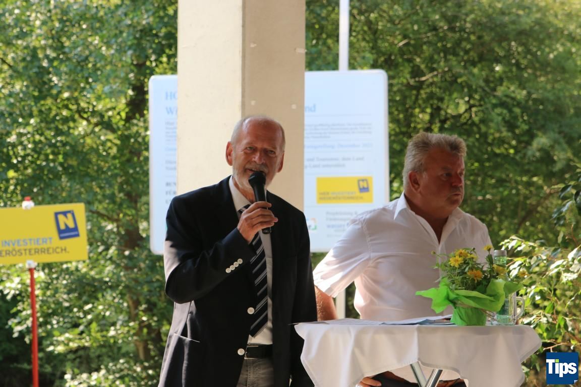 Wieselburgs Bürgermeister Günther Leichtfried (SPÖ) und Karl Gerstl, Bürgermeister von Wieselburg Land (ÖVP) eröffneten gemeinsam die Feierlichkeiten rund um den Spatenstich des Hochwasserschutzprojektes. Leichtfried blickte in das Jahr 2009 zurück: Damals verwandelten sich die Kleine und die Große Erlauf binnen wenigen Stunden in einen reißenden Fluss, dem die Überflutung weiter Teile des Gebietes folgte. Darüber hinaus warf Leichtfried auch einen Blick auf die Ursachen, die sich wie kleine Mosaiksteine zusammensetzen: der Versiegelung und Verdichtung des Bodens durch Bebauung, Flussregulierungen und dem Anstieg des CO2 Gehaltes, der durch die Nutzung fossiler Brennstoffe die Erderwärmung und den Klimawandel mit sich bringe.