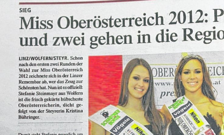 Gleich neben Steinmayr aufs Siegertreppchen durfte die zwei Jahre jüngere AHS-Schülerin Kristina Bühringer aus Steyr treten. Auch sie ist in ihrer Freizeit sportlich unterwegs, begeistert sich für Volleyball, Golf und ebenso Reiten. Als Erstplatzierte werden Stefanie und Kristina bei der Wahl zur Miss Austria 2012 am 30. März im Grand Casino Baden dabei sein.