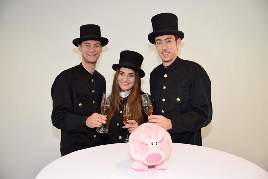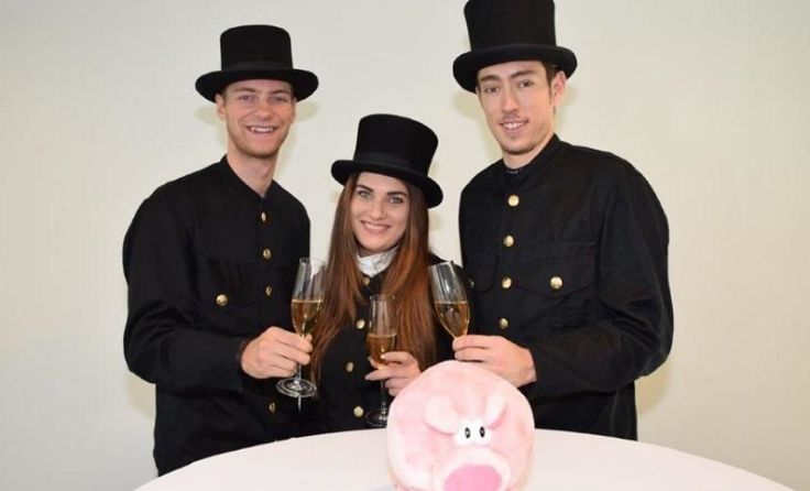 WOLFSEGG. Als Rauchfangkehrer verkleidet stießen Oberösterreichs Top-Radprofis Felix Großschartner und Michael Gogl mit Rauchfangkehrermeisterin Monika Herrenbauer-Thaller und ihrer Assistentin Carina Stöttner mit Sekt an und wünschen allen Lesern von Tips viel Gesundheit im Neuen Jahr.