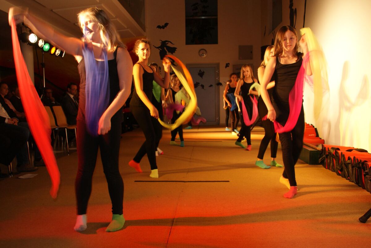 Unter dem Motto „Sport und Musik“ wurde den zahlreichen Gästen in der Aula der Schule ein buntes Programm, - von Tanz- und Showeinlagen bis zu musikalischen Beiträgen - geboten. Für das leibliche Wohl sorgte ein Buffet, das der Elternverein organisierte.
