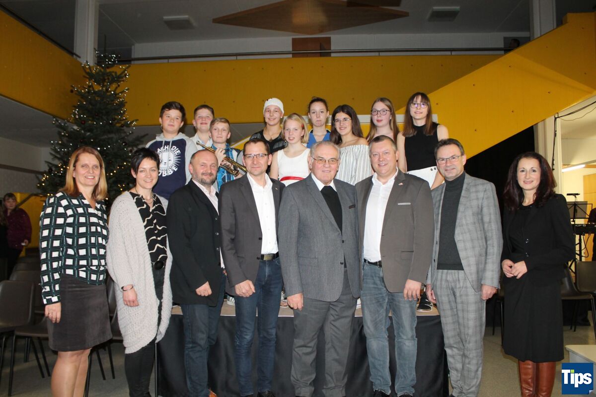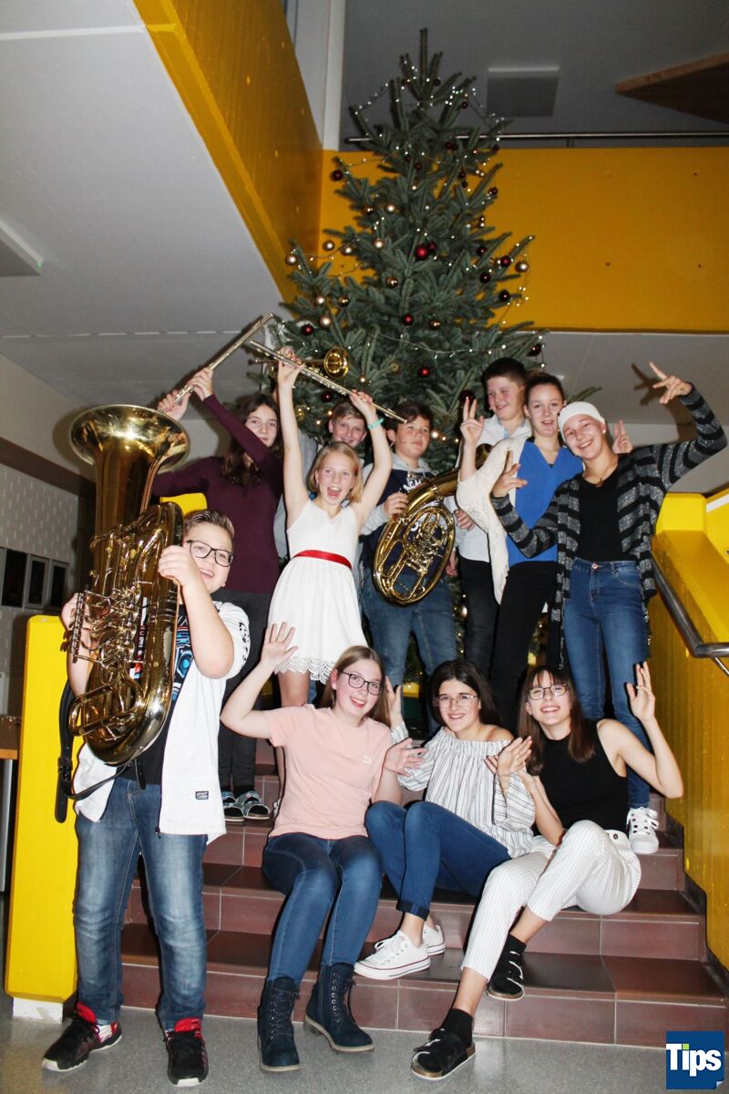 Eröffnet wurde mit „Leise rieselt der Schnee“, das ein sechsköpfiges Gitarrenensemble zum Besten gab, begleitet von ihrem Lehrer auf der Mandoline. Weiter ging es mit einem großen Bläserensemble mit „Joy to the world“. Abwechselnd trug ein großer Gesangschor verschiedenste Lieder vor, untermalt mit philosophischen Texten von „Ich möchte nicht in einer Welt ohne Weihnachten leben, doch leider sehe ich jedes Jahr ein bisschen weniger davon“ über „Geschenke findet man immer, wenn man nur ein bisschen hinhört“ zu „Was benötigen wir zum Glücklichsein? – Nur einander und keiner allein“. Dazwischen spielten Schüler Passagen vor, wie es oft zu Weihnachten wirklich ist: Stresssituationen mit Schuldzuschiebungen, die dann aber mit Entschuldigungsbriefen unterm Weihnachtsbaum aufgelöst wurden.“Damit dieses Konzert gelingen kann, braucht es auch ein engagiertes Lehrerteam“, weiß Direktor Eric Schilcher. Unter der Leitung von Karin Knotzer, die auch den Chor dirigierte, hat das Musikerteam Roland Grünwald, Aron Saringer, Manfred Hinterndorfer, Karl Kormesser, Christian Renk, Alexander Kastner und Florian Weiß die Schüler als Band begleitet. Dem Genuss der besinnlichen Lieder und Texte lauschten in der vollbesetzten Aula auch viele Ehrengäste. Dazwischen wurde auf Wunsch nicht applaudiert, was der Atmosphäre gleich noch einmal mehr Besinnlichkeit und Harmonie gab.
