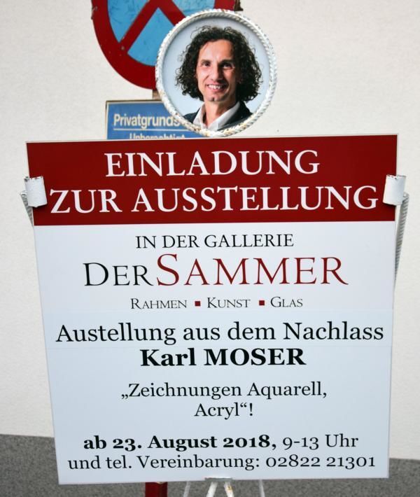 Karl Moser lebte und arbeitete als freischaffender Künstler in Traunstein. Bevorzugte künstlerische Ausdrucksmöglichkeiten: Zeichnung (Graphit, Pastell...), Aquarell, Acryl, Radierung, Holz-und Linolschnitt, Bildhauerei (Holz, Ytong), auch Buchillustrationen. Seit 1979 mehr als 250 Ausstellungen! Neben der künstlerischen Arbeit leitete Karl Moser zahlreiche Mal- und Zeichenkurse für Kinder und Erwachsene. „Die Werke von Karl Moser tragen die Schönheiten des Waldviertels über seine engere Heimat hinaus, um sie auch jenen zu zeigen, die nicht das Glück haben, hier leben zu dürfen!“