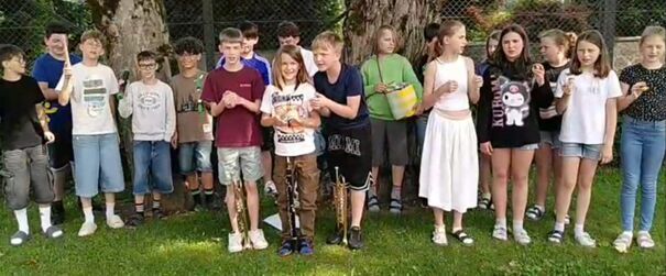 Im Rahmen eines fächerübergreifenden Projekts in Musik und Deutsch haben 19 engagierte Schülerinnen ein beeindruckendes Lied zum Thema „Fische“ entwickelt. Mit ihrem Werk wollen die jungen Musikerinnen die Augen für ein drängendes Umweltproblem öffnen. Die Klasse schrieb den Liedtext im Deutschunterricht gemeinsam. Dabei setzten sich die Schüler*innen intensiv mit der Verschmutzung der Meere auseinander. Es entstanden eindringliche Zeilen, die nicht nur die Bedrohung der Meeresbewohner schildern, sondern auch zum Nachdenken anregen. Parallel dazu wurde im Musikunterricht eine passende Melodie entwickelt. Zudem wurden aus Abfallprodukten diverse Instrumente selbst gebastelt, welche dann im Musikstück eingesetzt wurden. Ebenso spielten sie die musikalische Begleitung selbst. Mit Geige, Klarinette, Schlagzeug, Blockflöte und Querflöte entstand ein lebendiges Klangbild, das den Text wirkungsvoll untermalt.