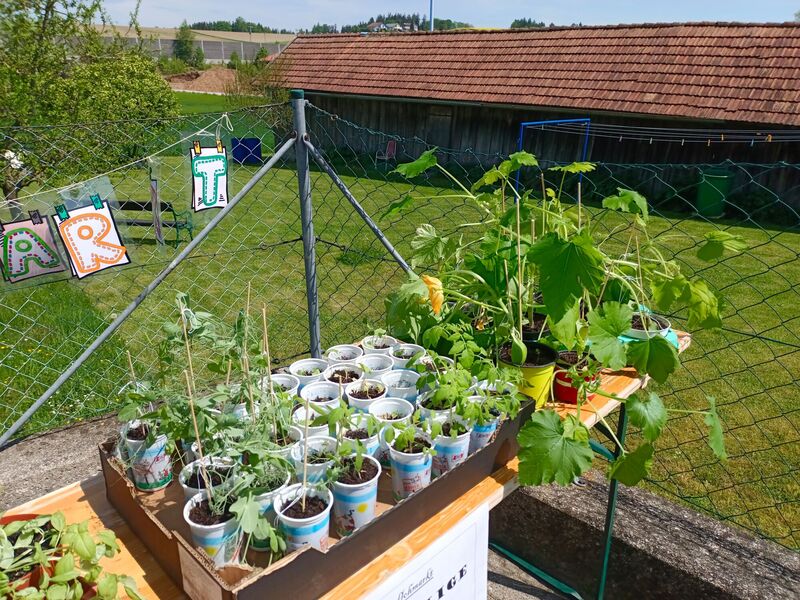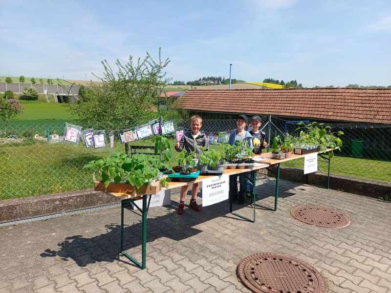 Gemeinsam mit den Kindern werden im Rahmen unseres Pflanzenflohmarktes Pflanzen aus Samen großgezogen, gepflegt und umgetopft. Die Kinder fördern durch das Großziehen und Pflegen von Pflanzen ihr Naturverständnis. Sie lernen verschiedene Pflanzenarten, ihren Nutzen und die wichtigste Pflege kennen. Für die Pflege der Pflanzen übernehmen die Kinder viel Verantwortung. Neben dem Zusammenhalt und dem Teamgeist wird durch die schulstufenübergreifende Arbeit auch der Gemeinschaftssinn innerhalb der Schule gefördert. Doch auch zur Gemeinschaft innerhalb der Gemeinde trägt unser Flohmarkt bei - denn nicht nur Eltern, Großeltern und Verwandte erwerben Pflänzchen, sondern auch der Kindergarten kauft Gemüsepflänzchen bei uns, um sie in ihre Hochbeete zu setzen.