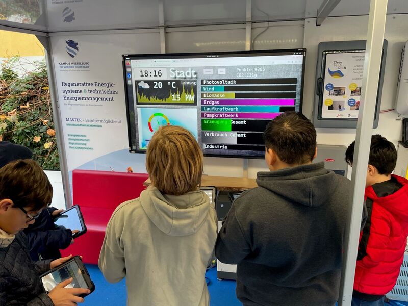 Der Energy Trailer ist ein 11m langes, mobiles Energielabor und bekannt für seine spannende Ausstattung: vom Windrad über Planzenkraftwerk bis zur Carrera Rennbahn betrieben durch Muskelkraft, ist alles mit dabei. Die jungen ForscherInnen der MS Schwertberg hatten die Möglichkeit, energiegeladene Aktivitäten zu erleben, darunter das Solarpanel, ein Power Game, Experimente aus dem Koffer und sonnengekochte Snacks.