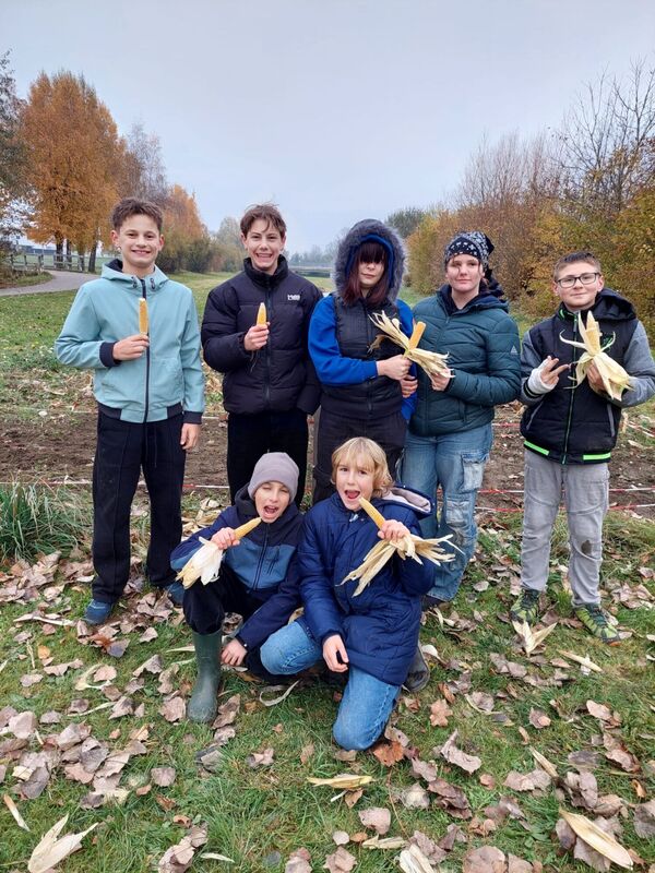 Unser Projekt „Popcornmais“ geht in diesem Schuljahr in die zweite Phase. Im vergangenen Schuljahr wurde der Acker vorbereitet und der Mais – ebenso wie Kürbis und Bohnen – ausgesät. Nach Monaten des Beobachtens und Wartens konnten wir im Herbst schließlich unsere eigenen Maiskolben ernten.
