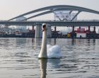 Einschwimmen Tragwerk 1 Neue Donaubrücke Linz 24. Februar 2021