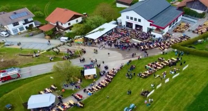 Traditionelles Maibaum stellen der Zeche Michlbach