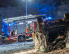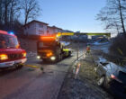 Auto stürzt im Haselgraben über eine Mauer und bleibt am Dach liegen