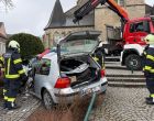 Lenkerin nach Kollision mit Steinmauer in Bad Leonfelden aus Auto befreit