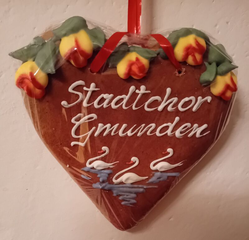 Der Stadtchor Gmunden, früher Gmundner Gesangsverein, besteht seit 1861 mit wechselhafter Geschichte. Gerade eben haben wir wieder nach alter Tradition die "Liebstatt Sonntagsmesse" in der Stadtpfarrkirche Gmunden gestaltet und dafür hat uns die Traditionskonditorei Grellinger für jedes Chormitglied ein besonderes Liebstattherz gestaltet. Wir haben ein riesiges Repertoire, ein dementsprechendes Archiv, von dem wir die wertvollsten handgeschriebenen Stimmbücher aus dem 19.Jhdt. demnächst an das Landesarchiv übergeben werden.