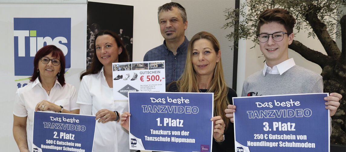 Tips, Tanzschule Hippmann und Neundlinger Schuhmoden haben das beste Tanzvideo 2019 gesucht – und gefunden! Die Gewinnerin ist Martina aus Freistadt mit der Gruppe United Steps. Sie hat von den Tips Lesern die meisten Stimmen erhalten. Auf Platz 2 hat es Elisabeth aus Urfahr-Umgebung mit den Crazy Chicken Linedancers geschafft. Platz 3 belegt Magdalena aus Rohrbach mit dem TSC Rohrbach.