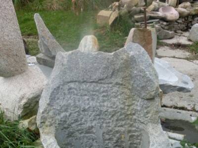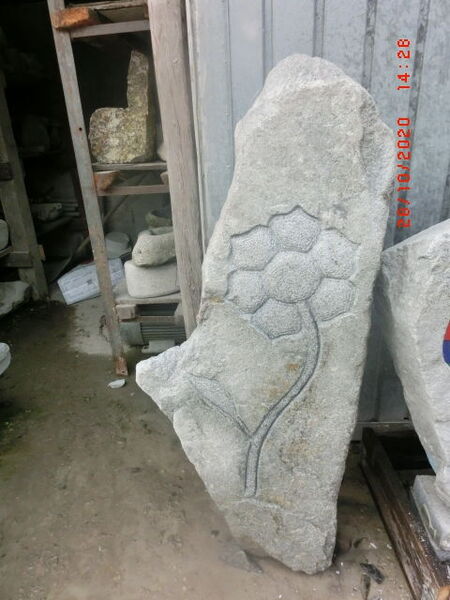 Daneben ist mein Arbeitsplatz und Steinlager. Nebenan ist eine Hütte, die mir