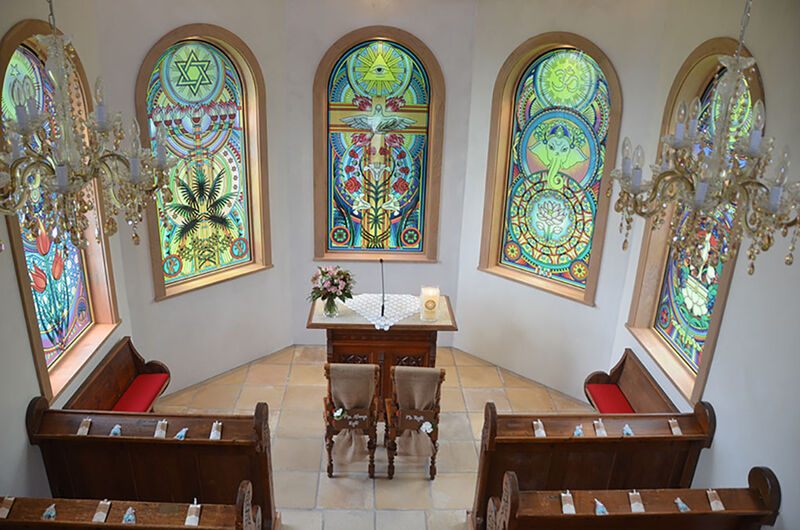 Zeremonie wahlweise (Vedakirche, Liebesinsel, Obstgarten, Liebesweg, bei Schlechtwetter Siddhiraum)